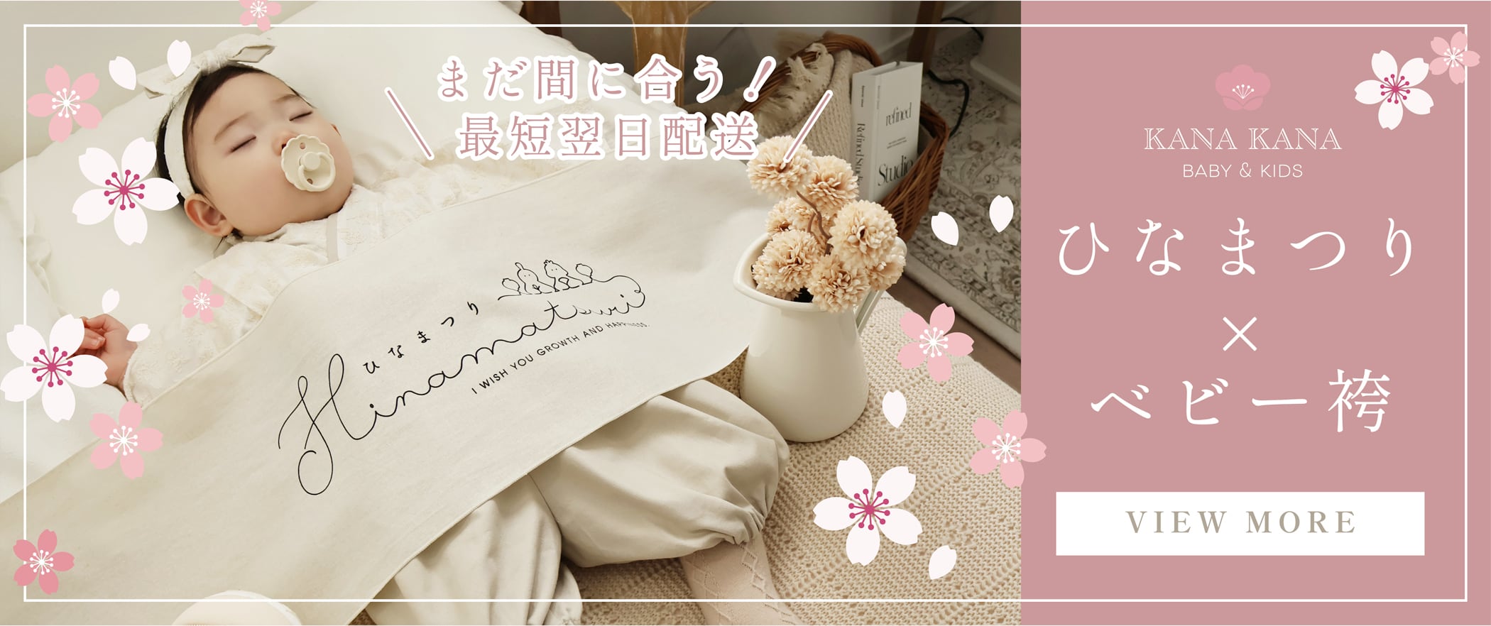 【ひな祭りにまだ間に合う!最短翌日配送✿】 レビュー投稿で、マンスリーカードをプレゼント中です。 詳しくはこちらから→https://x.gd/lpcU9 -安心と信頼の国内仕立て- 【ひな祭りに寄り添う KANAKANA限定セット】 〜✿〜 はじめて迎える、春の節目。 赤ちゃんの健やかな成長を願う、ひな祭りの日に。 KANAKANAのベビー袴に、ひな祭りの記念撮影にぴったりな タペストリーとダルブリボン を合わせた、数量限定の3点セットです。 お衣装から空間づくりまで、 これひとつでひな祭りの記念フォトが完成します。 【KANAKANA限定の別注刺繍生地 小花刺繍】 レースのように繊細な小花刺繍があしらわれた、人気のシリーズ。 ホワイトの上品な生地に、淡いくすみピンクの袴が優しく調和します。 季節を問わず、さまざまな節目の日に選ばれている柄のセット。 【セット内容】 こちらの商品は、以下の 3点セット です。 ご希望のサイズセットをご選択ください。 ◎70サイズ ・ベビー袴 70サイズ:小花刺繍ホワイト×くすみピンク ・ダブルリボンヘアバンド Sサイズ:小花刺繍ホワイト×くすみピンク ・ひな祭りタペストリー ◎80サイズ ・ベビー袴 80サイズ:小花刺繍ホワイト×くすみピンク ・ダブルリボンヘアバンド Mサイズ:小花刺繍ホワイト×くすみピンク ・ひな祭りタペストリー ※セット内容の変更・単品販売は行っておりません。 【袴サイズ】 サイズ選びの参考はこちら↓ https://x.gd/sFdKt ✿発送日のご確認はこちら↓ https://x.gd/wsSJ6 ✿注意事項✿ 『ご購入の前の注意事項』を必ず一読ください↓ https://x.gd/w710E ※衣装、レンタル等を含む商用利用不可となっております。 ※同じシリーズの商品は、袴・小物ともに同じ生地を使用しておりますが、生地の染色や裁断のロットにより、組み合わせた際にごくわずかな色味の差が生じる場合がございます。 着用や撮影の際に大きく印象が変わるものではございませんが、あらかじめご了承いただけますと幸いです。 ※ 商品画像の色味につきましては、撮影場所や照明・光の当たり具合、お使いのPC・スマートフォン等の環境〈モニター、ブラウザ等〉等により色の見え方が現物と若干異なる場合がございます。予めご了承くださいませ。
