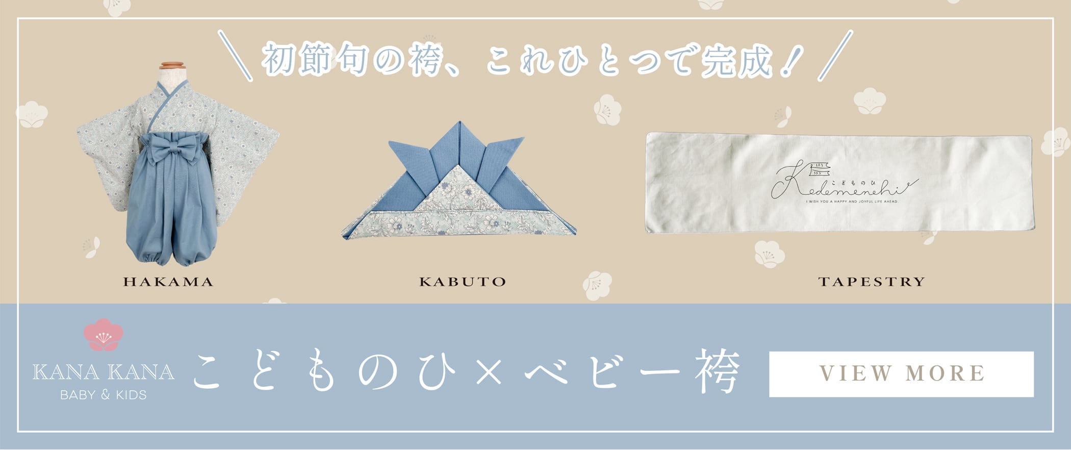 レビュー投稿で、マンスリーカードをプレゼント中です。 詳しくはこちらから→https://x.gd/lpcU9 -安心と信頼の国内仕立て- 【こどもの日に寄り添う KANAKANA限定セット】 〜✿〜 はじめて迎える、初夏の節目。 赤ちゃんの健やかな成長を願う、端午の節句の日に。 KANAKANAのベビー袴に、端午の節句の記念撮影にぴったりな タペストリーとかぶれる兜を合わせた、数量限定の3点セットです。 お衣装から空間づくりまで、 これひとつで端午の節句の記念フォトが完成します。 【KANAKANA限定の別注刺繍生地 麻の葉刺繍】 少しくすんだ色味が美しく柔らかい印象の性別を選ばないブルー ナチュラルなキナリ色の袴と合わせて爽やかさと優しさを両立したセット 【セット内容】 こちらの商品は、以下の 3点セット です。 ご希望のサイズセットをご選択ください。 ◎70サイズ ・ベビー袴70サイズ:麻の葉刺繍dustyブルー×キナリ ・かぶれる兜Sサイズ:麻の葉刺繍dustyブルー×キナリ ・こどものひ タペストリー ◎80サイズ ・ベビー袴80サイズ:麻の葉刺繍dustyブルー×キナリ ・かぶれる兜Mサイズ:麻の葉刺繍dustyブルー×キナリ ・こどものひ タペストリー ※セット内容の変更・単品販売は行っておりません。 【袴サイズ】 サイズ選びの参考はこちら↓ https://x.gd/sFdKt ✿発送日のご確認はこちら↓ https://x.gd/wsSJ6 ✿注意事項✿ 『ご購入の前の注意事項』を必ず一読ください↓ https://x.gd/w710E ※衣装、レンタル等を含む商用利用不可となっております。 ※ 商品画像の色味につきましては、撮影場所や照明・光の当たり具合、お使いのPC・スマートフォン等の環境〈モニター、ブラウザ等〉等により色の見え方が現物と若干異なる場合がございます。予めご了承くださいませ。 ※同じシリーズの商品は、袴・小物ともに同じ生地を使用しておりますが、生地の染色や裁断のロットにより、組み合わせた際にごくわずかな色味の差が生じる場合がございます。 着用や撮影の際に大きく印象が変わるものではございませんが、あらかじめご了承いただけますと幸いです。
