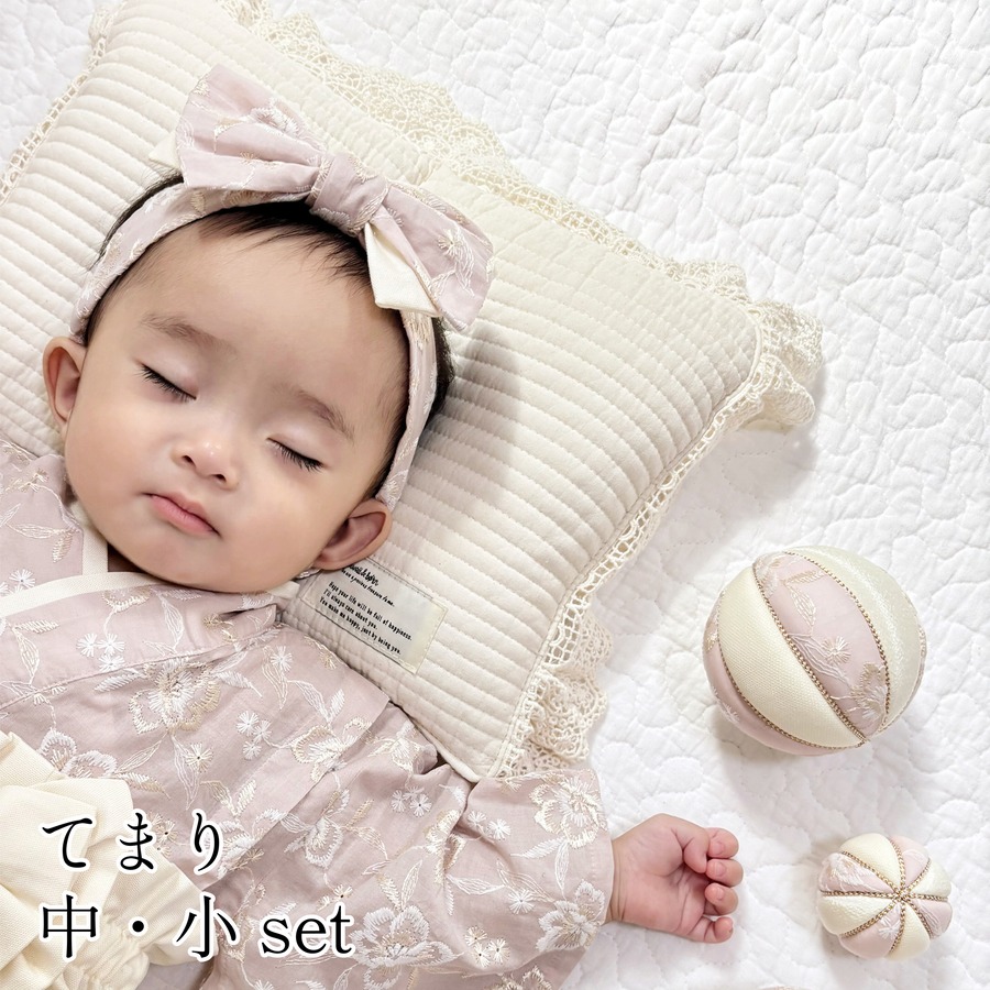 手毬 花柄刺繍ピンク 中/小セット