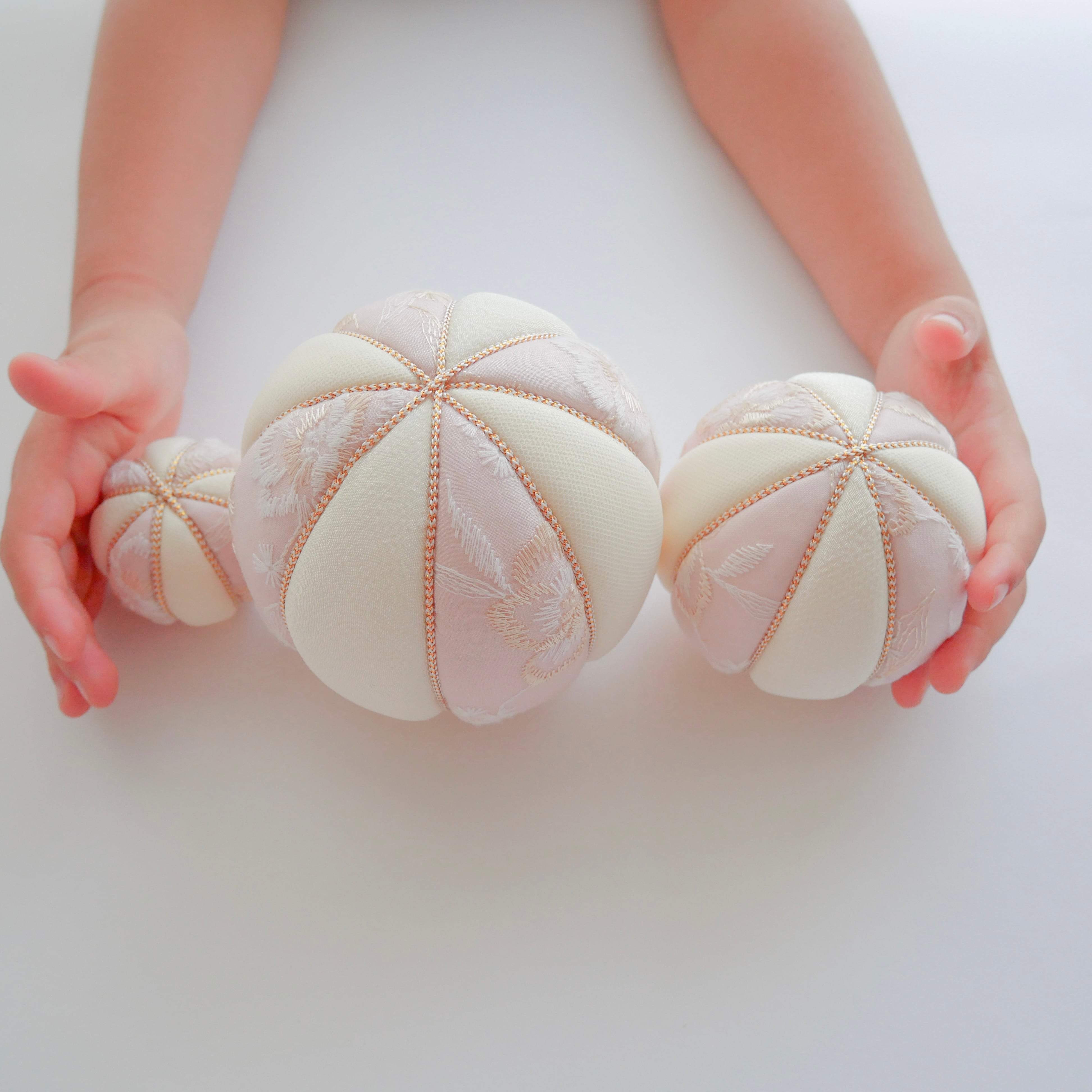 中(直径8㎝)+小(直径5㎝)の2個セット:赤ちゃんの小さな手に握らせたり、雛人形と並べても可愛い雰囲気になっています。