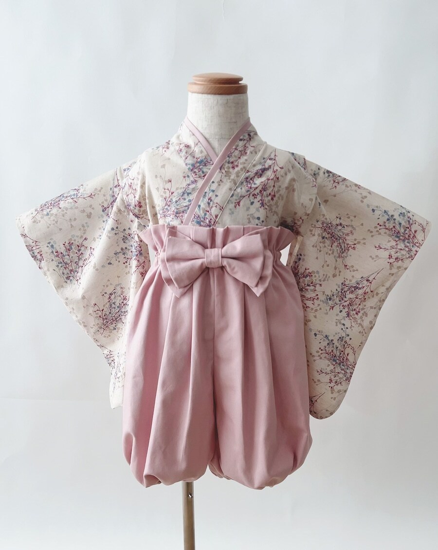 ・ベビー袴 80サイズ:かすみ草キナリ×くすみピンク