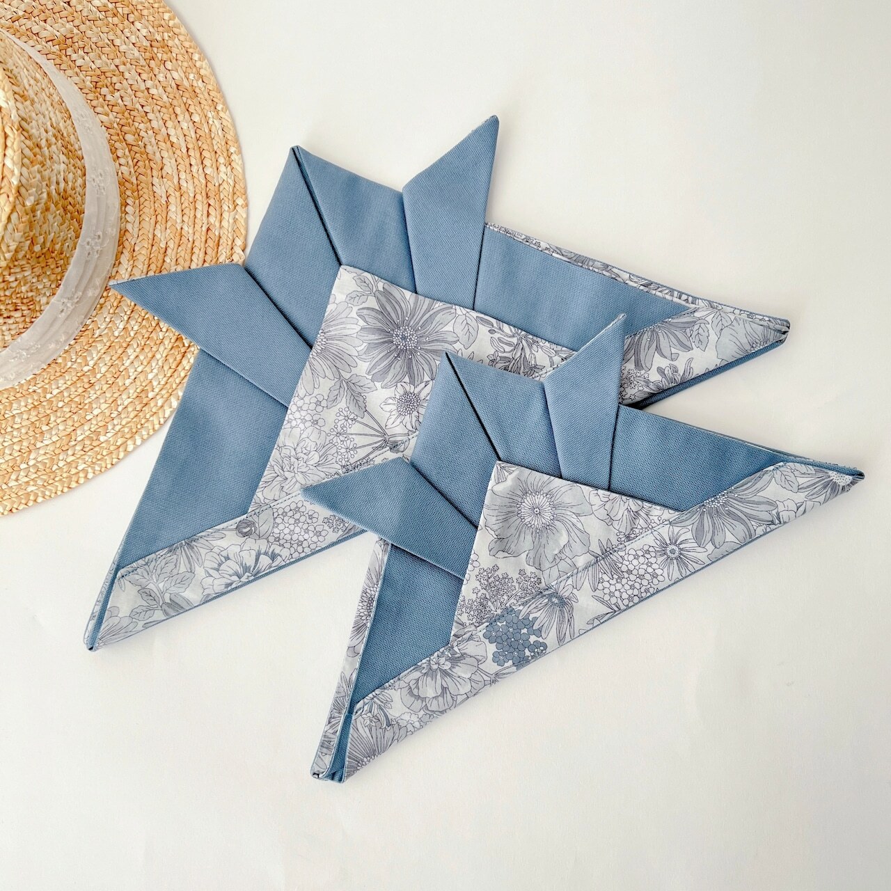 ・かぶれる兜Mサイズ:グレーフラワー×くすみブルー