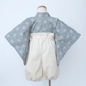 ・ベビー袴80サイズ:麻の葉刺繍dustyブルー×キナリ