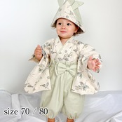 ・ベビー袴70サイズ:キナリ葉柄×グリーンティー