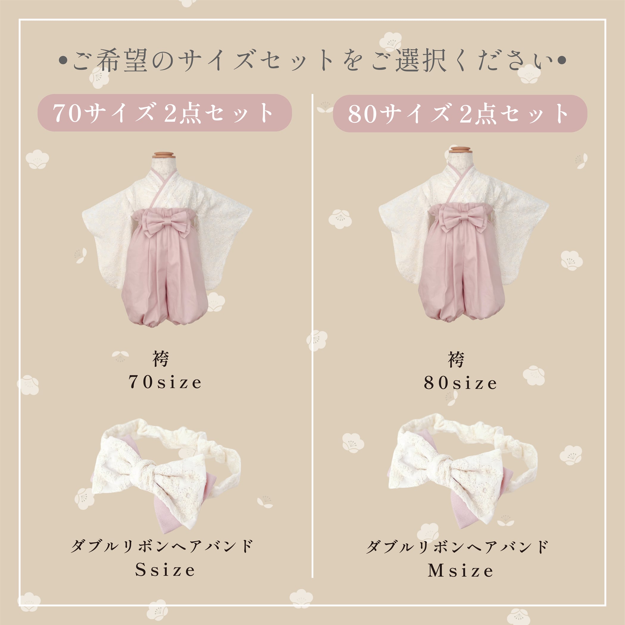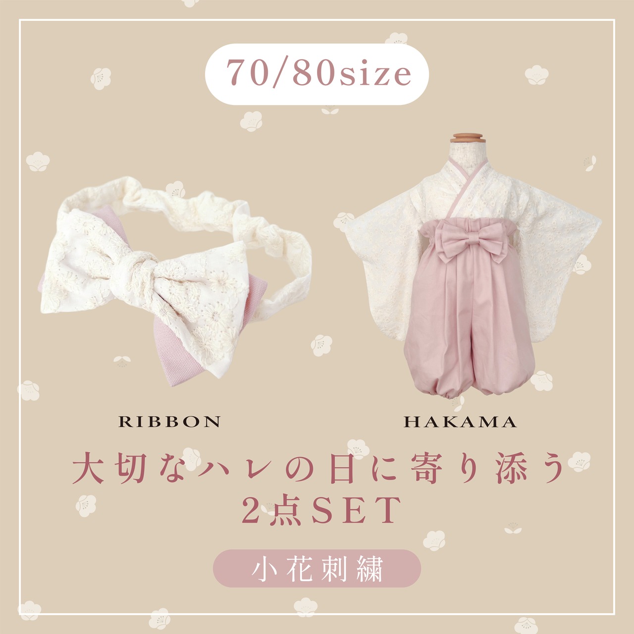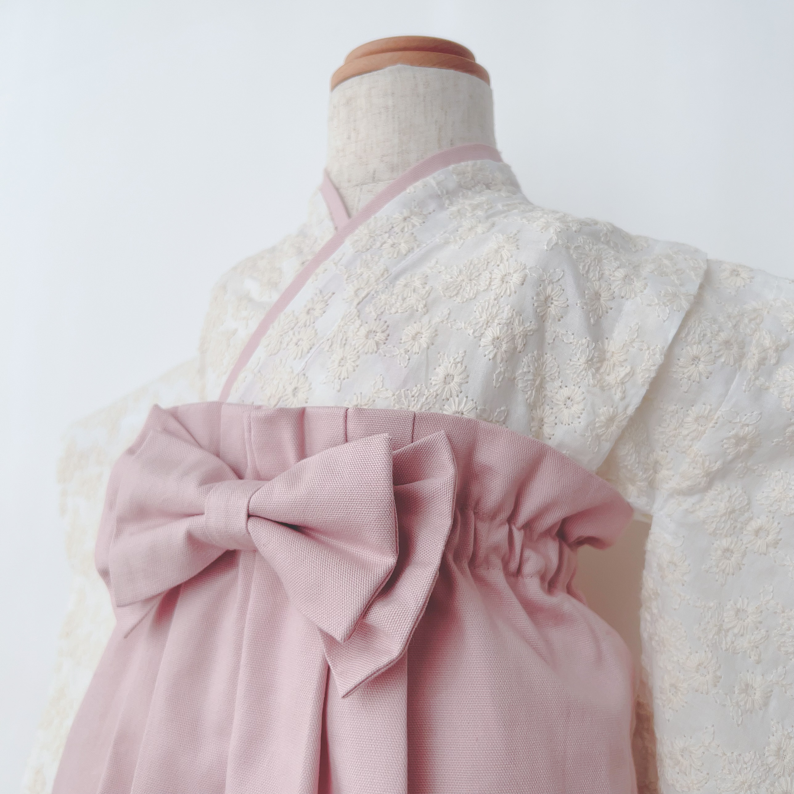 ・ベビー袴 80サイズ:小花刺繍ホワイト×くすみピンク