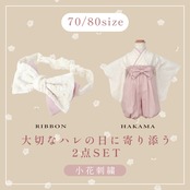 ・ベビー袴 70サイズ:小花刺繍ホワイト×くすみピンク