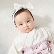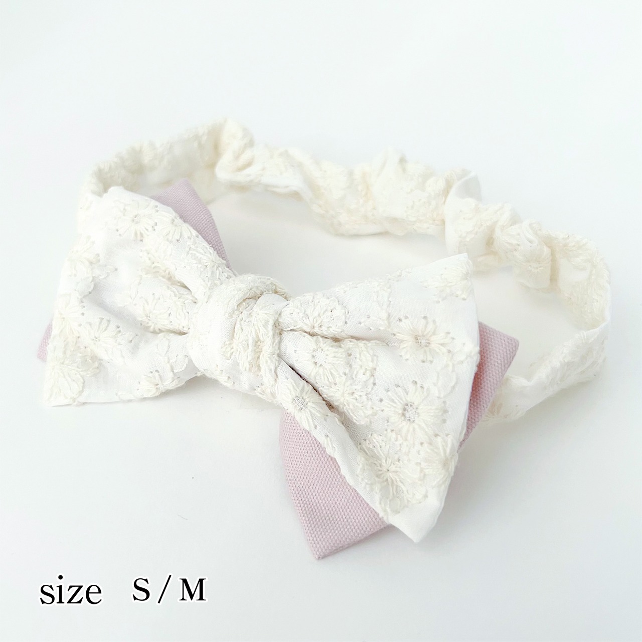 ・ダブルリボンヘアバンド Sサイズ:小花刺繍ホワイト×くすみピンク