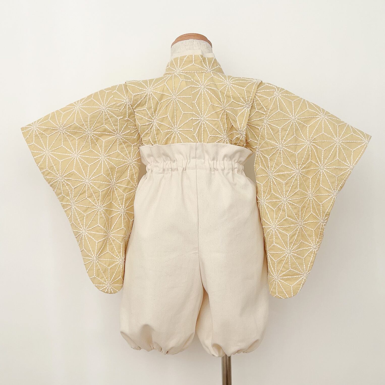 ・ベビー袴 80サイズ: 麻の葉刺繍mustard×キナリ