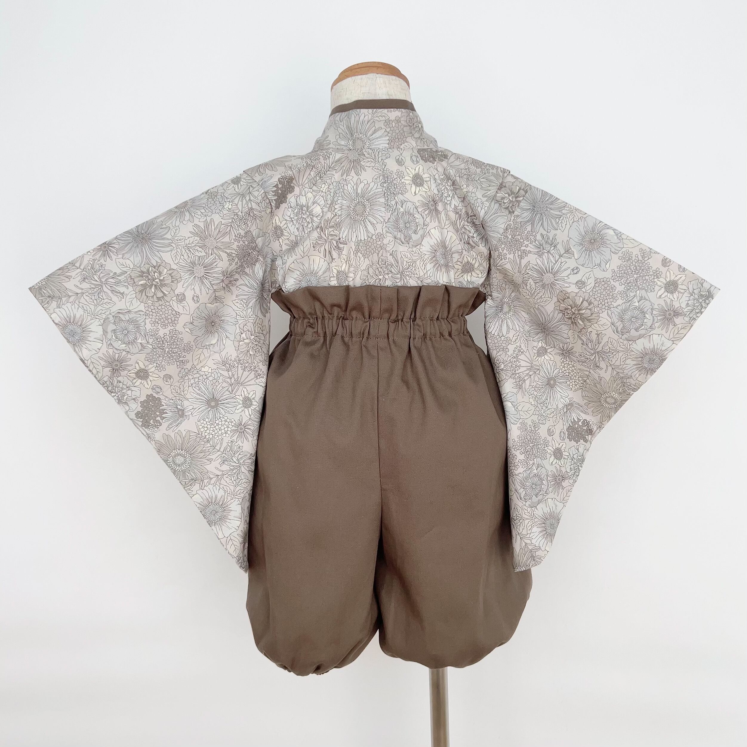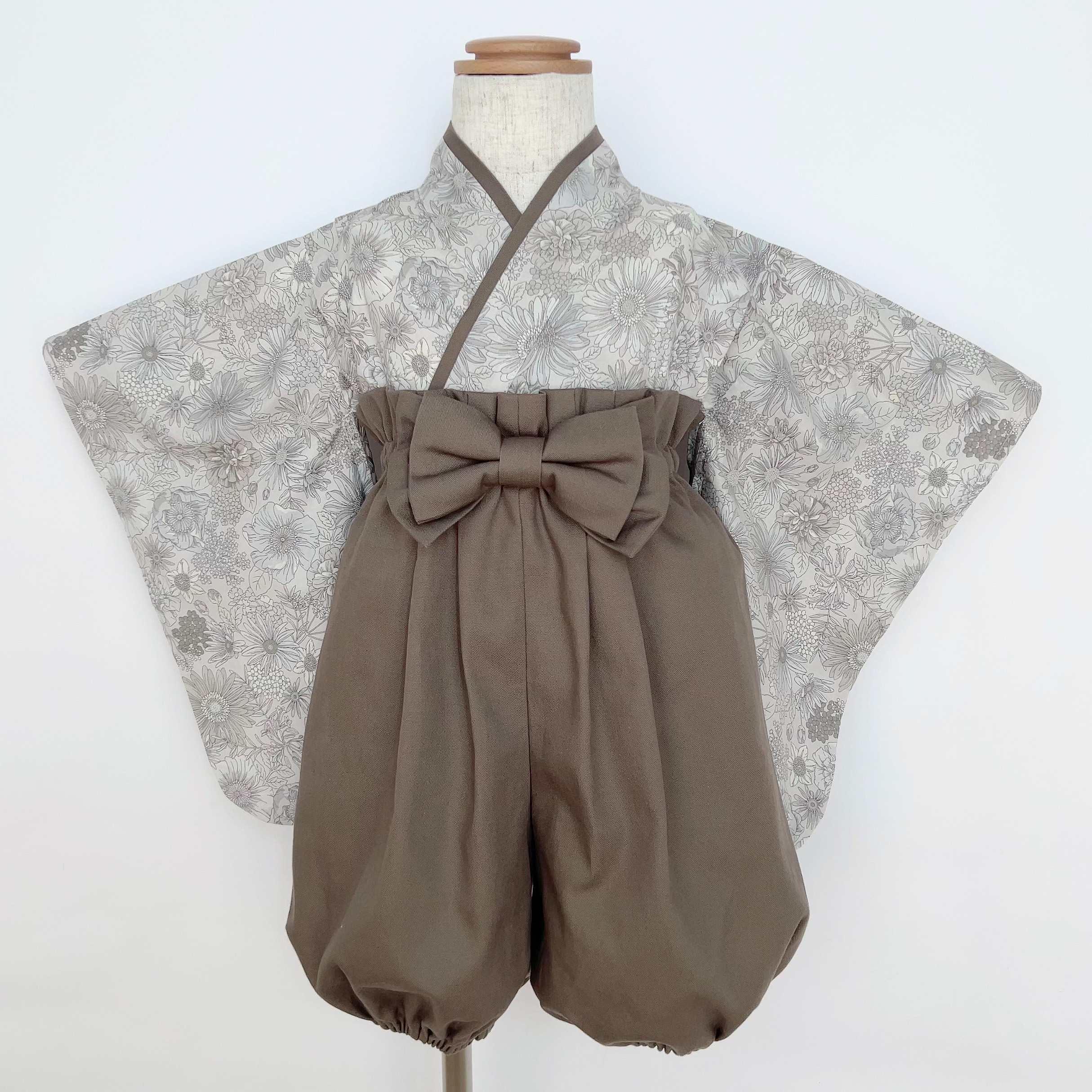 ・ベビー袴 80サイズ:ブランフラワー×グレージュ