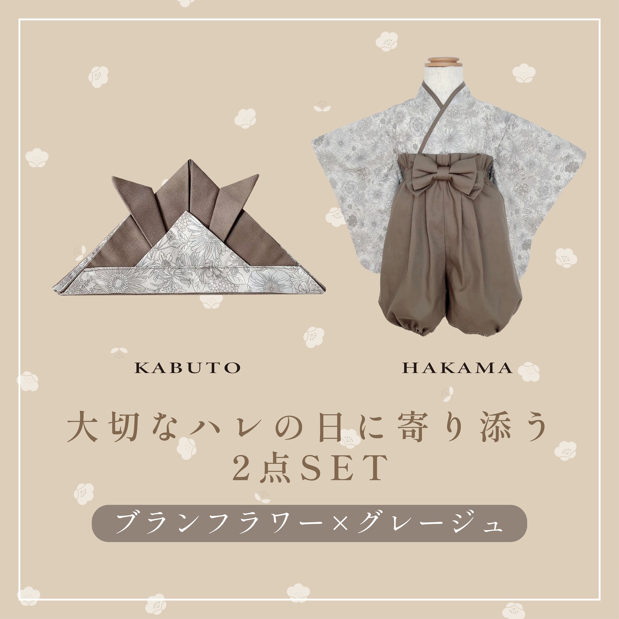 ・ベビー袴 70サイズ:ブランフラワー×グレージュ