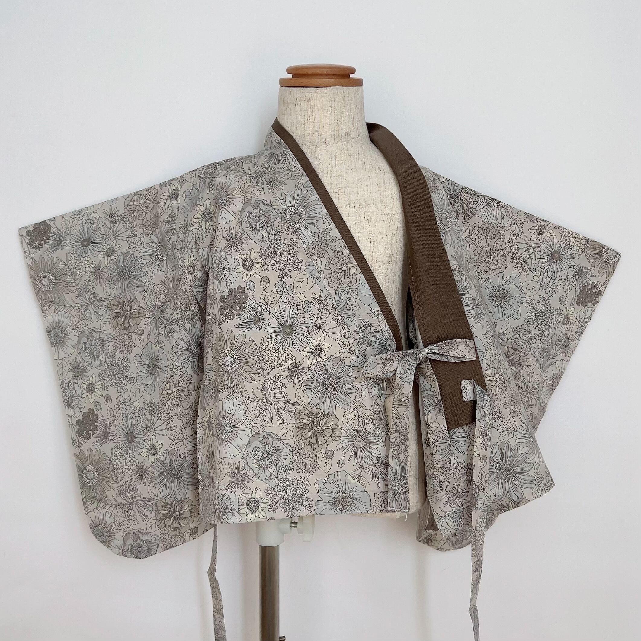 小花が散りばめられた上品な生地に、落ち着いたグレージュの生地。