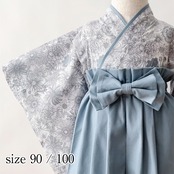 ベビー袴 グレーフラワー×くすみブルー 90/100