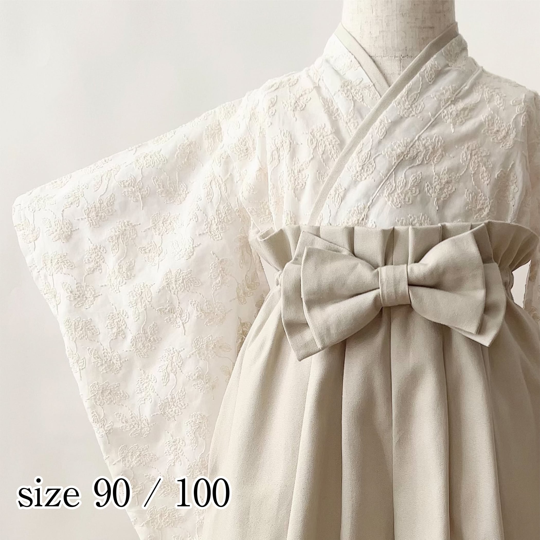 ベビー袴 葉柄刺繍ホワイト×サンドベージュ 90/100