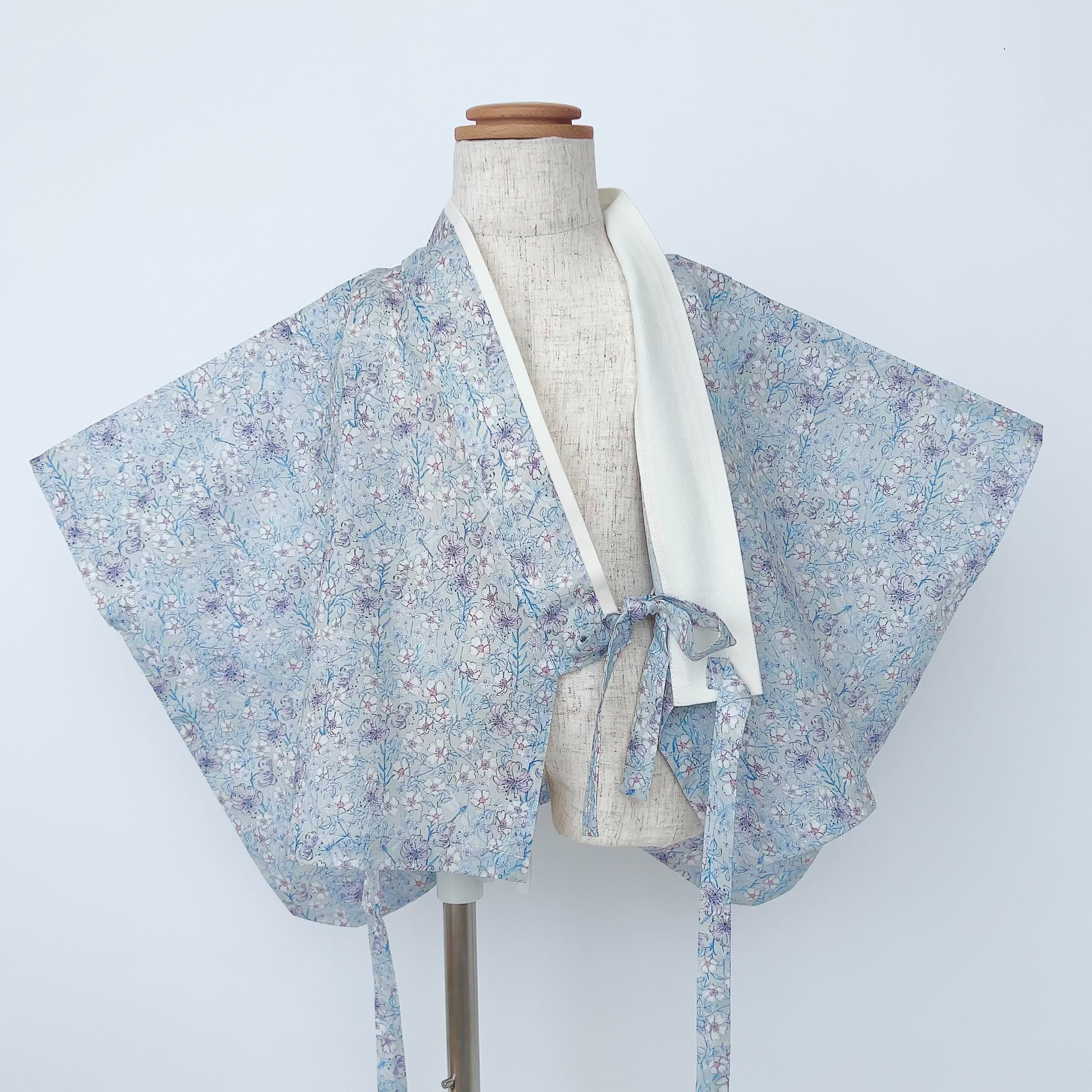 爽やかなブルーとナチュラルな小花柄の組み合わせがお洒落な一着。