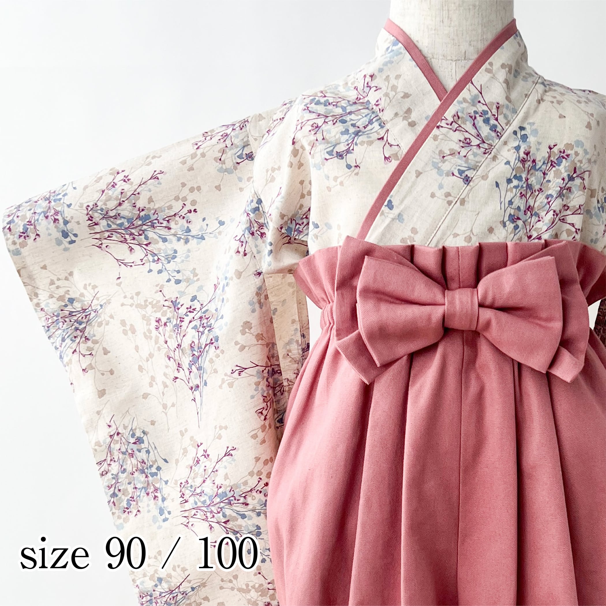 ベビー袴 かすみ草キナリ×ローズピンク 90/100