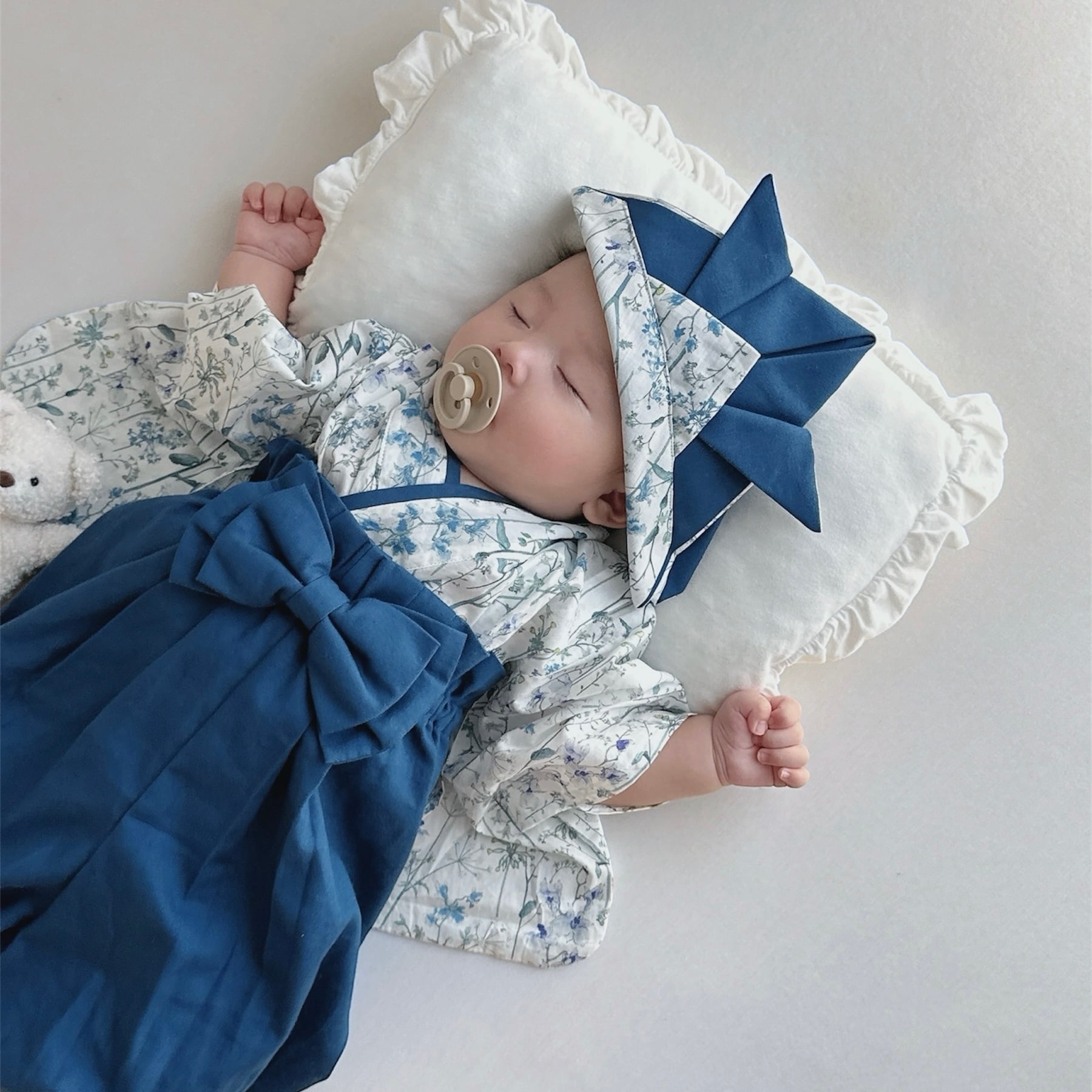 1年を通して着用するタイミングも多いので、お食い初めで着用したものを初節句やお正月で着用することで、大きくなったことの喜び・成長したことでまた違った見え方をする袴姿をお楽しみいだけます。