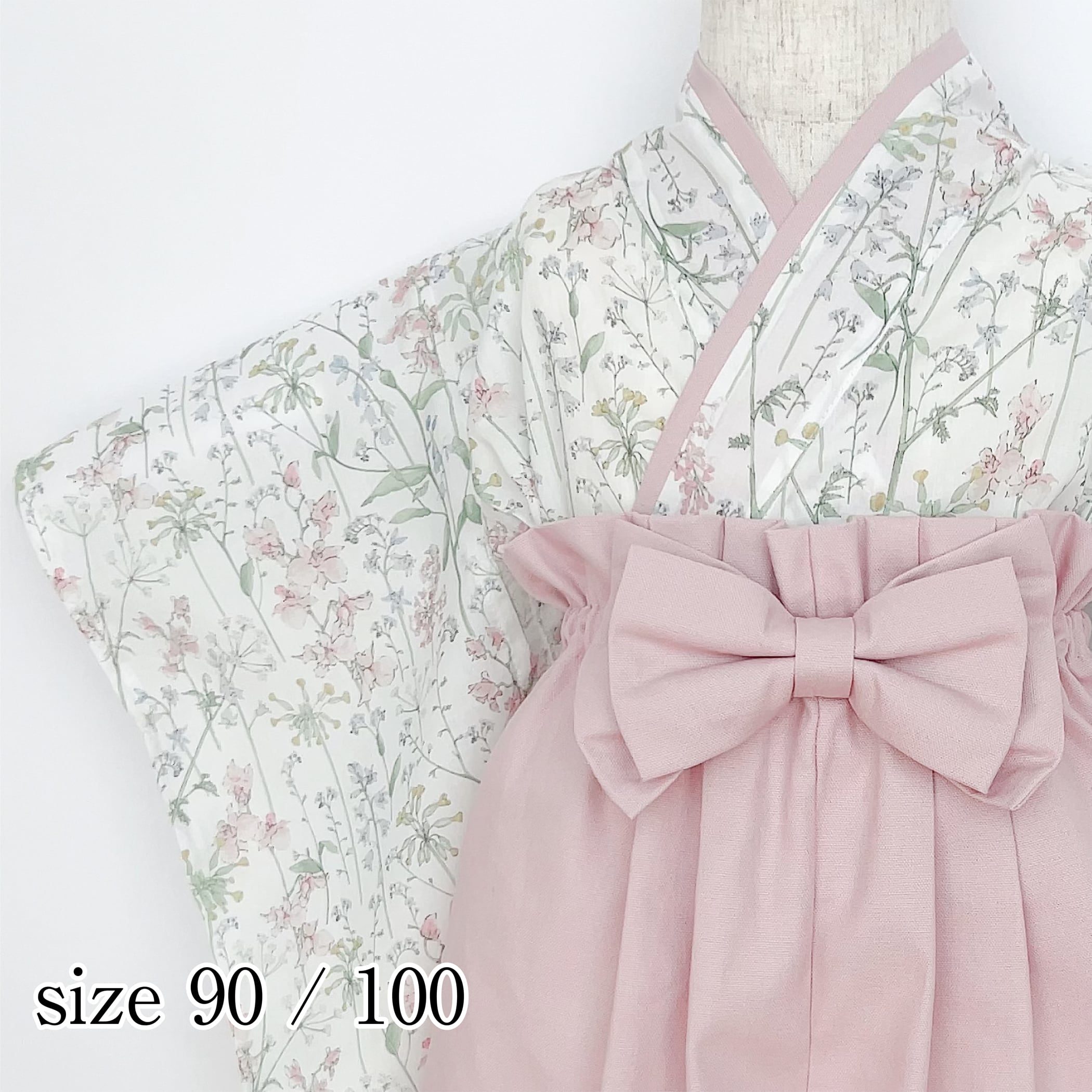 ベビー袴 リバティベルflower×くすみピンク 90/100
