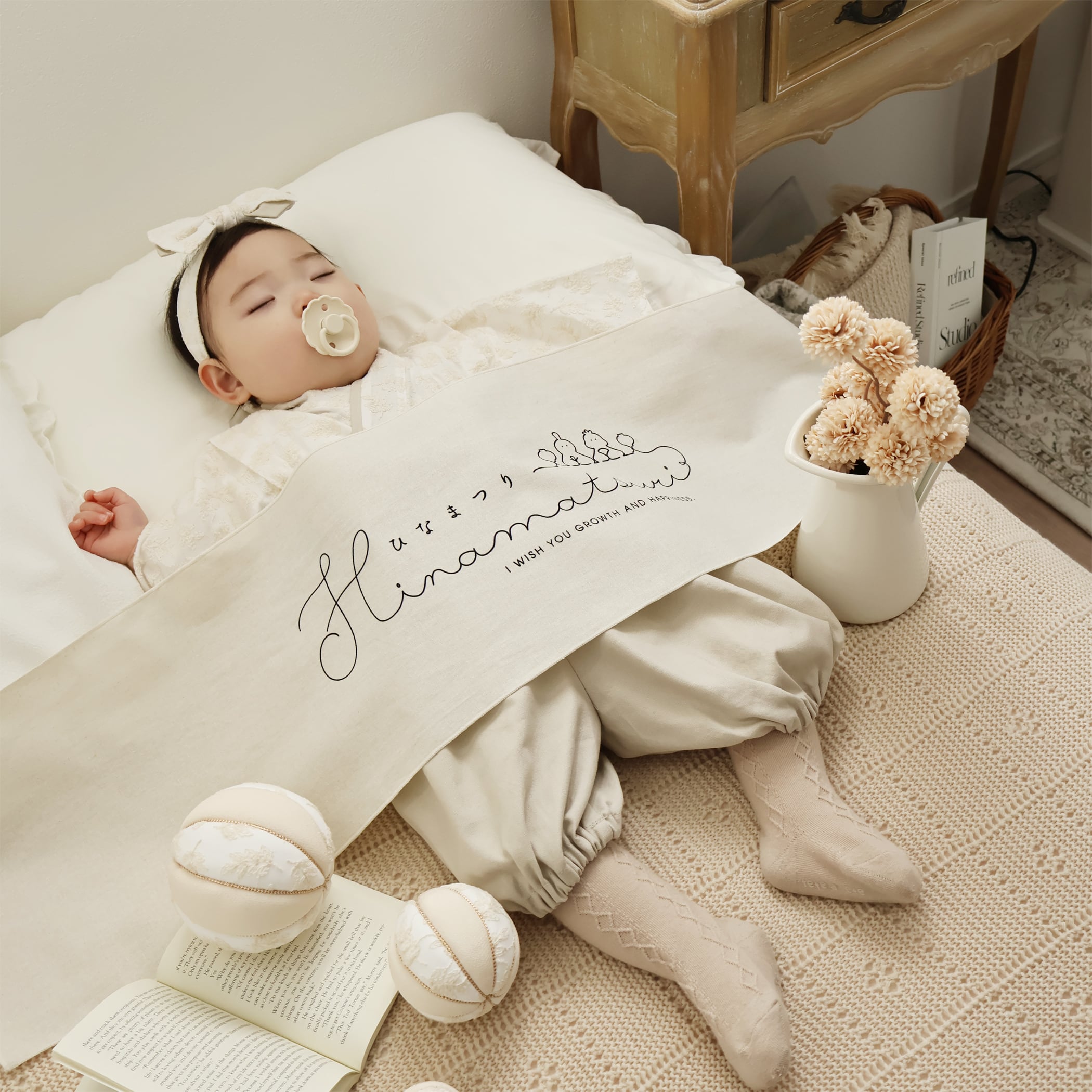 ねんね期のお子様にはお布団のようにかけて『\人気のねんねフォトの完成♡/』
